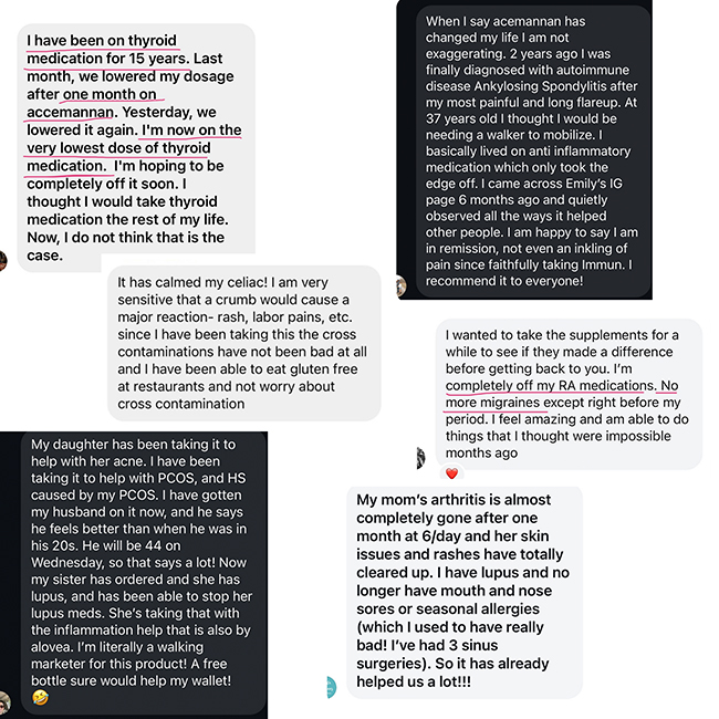For many months, I quietly shared these two daily supplements, Alovéa Immun & Limitless, with just close friends & family. I needed to see results to feel confident in what we were using & to witness the healing.