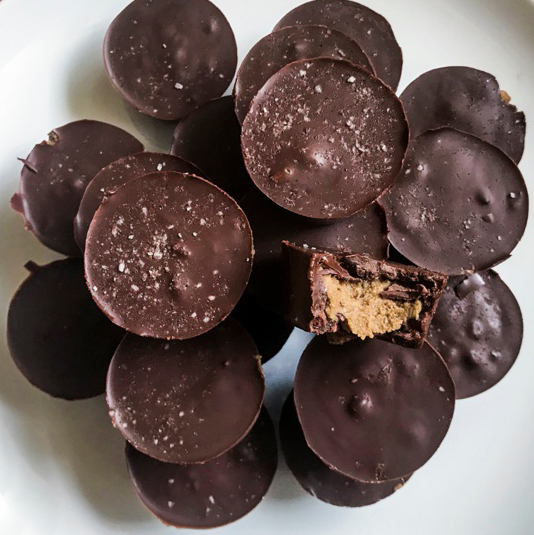 3. Place a little dollop of almond butter on top of the chocolate base (don’t worry about it being perfect, it will still taste good