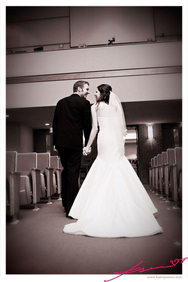 the best part of this photograph is that it was their natural reaction walking down the aisle after being pronounced husband & wife! SOOO cute!