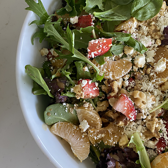 There are so many ways to have fun with this salad combo — you can add blueberries, dried cranberries, etc. Best part is how light & refreshing it tastes.