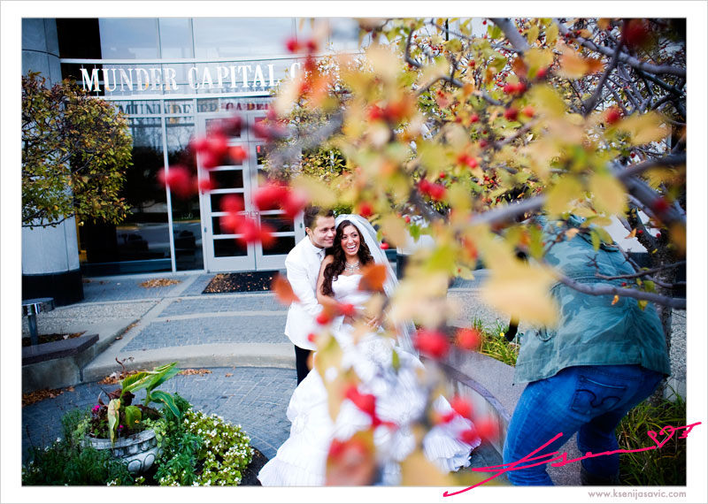 ah! the crazy things we photographers do sometimes to get the shot, as well as get a cool shot of the person shooting! make sense? in general, i think it is a neat shot that mike got of the couple, too!