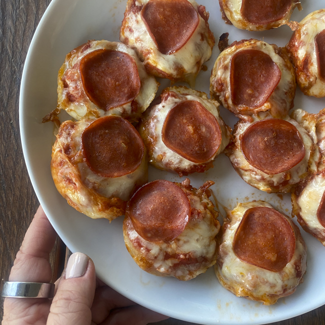 5. Serve: Use a fork to gently lift the mini pizzas out of the pan.