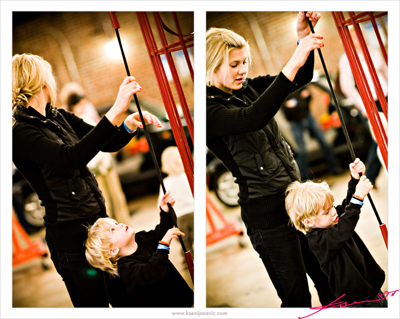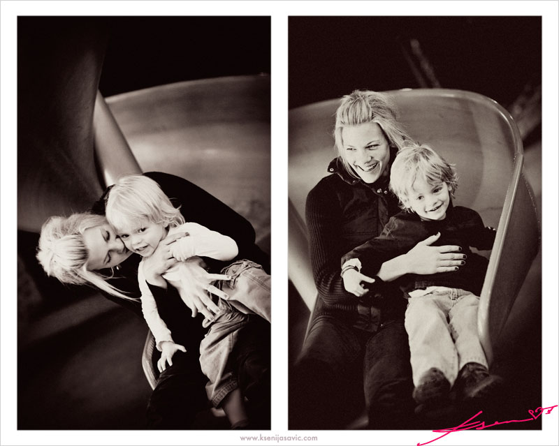 Romi braved the twirley slide with each of her boys