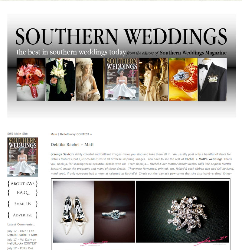 i just found out this morning that the details from Rachel & Matt's wedding are featured on Southern Weddings Magazine's blog!!! yay!