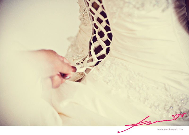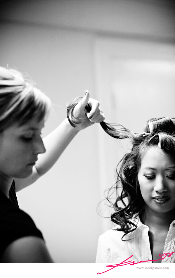 her Maid of Honor, Jolan, helping Trish with the getting ready process :