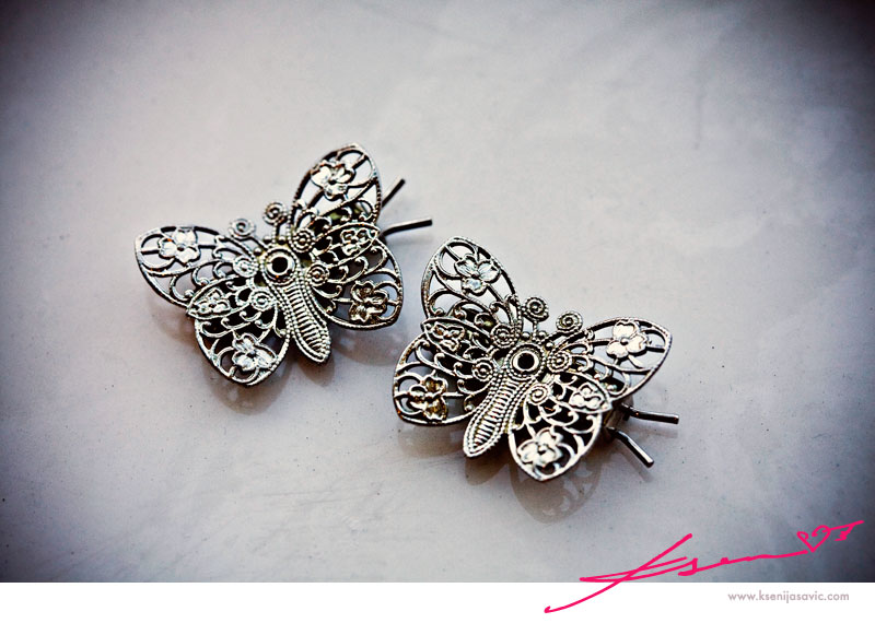 first up, Julie wore these butterfly clips on her first day of kindergarten.... & saved them this entire time, only to wear them again on her wedding day! could they be any more special?
