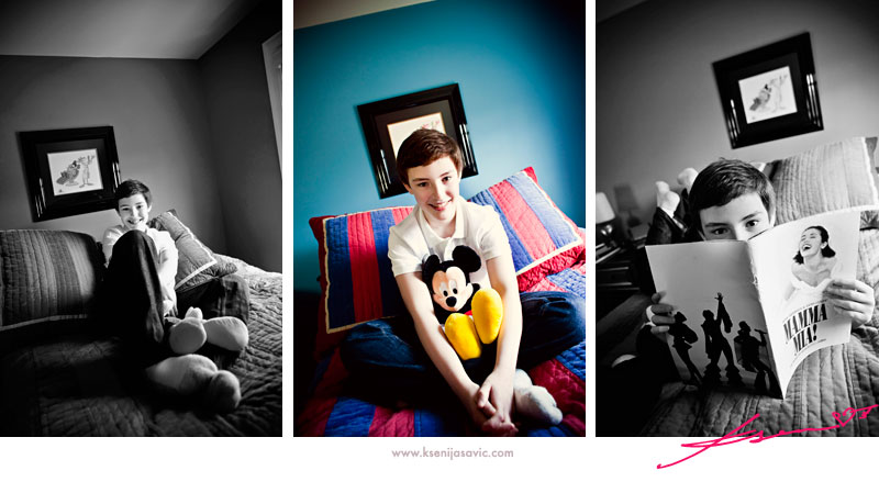 we started in Mitchell's bedroom. i loved all the bright, bold color! he is also really into Broadway Plays, so 'Mamma Mia' was quite an appropriate reading selection, as well.