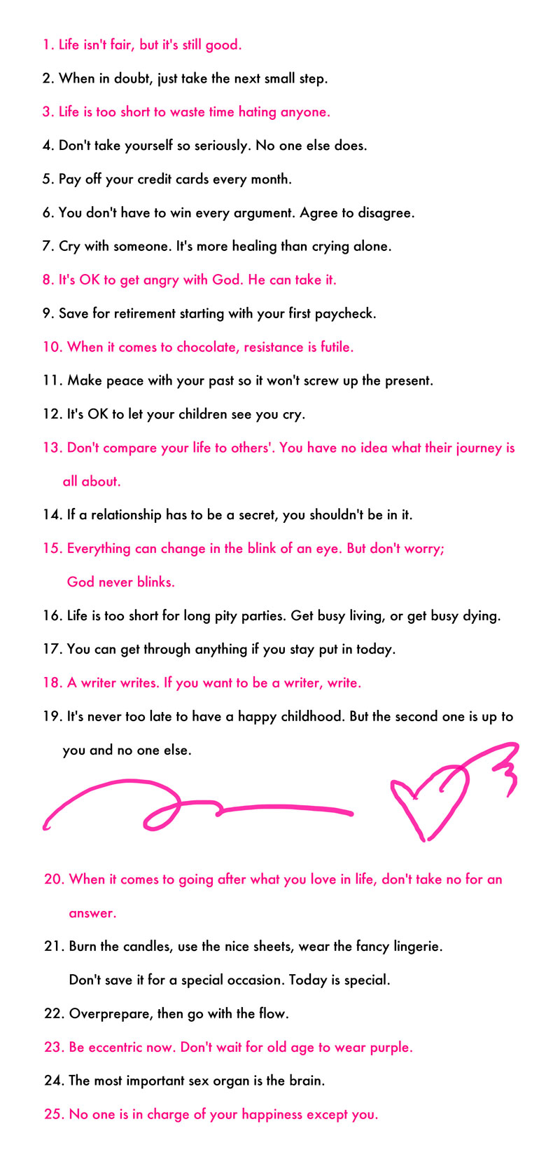 here are the first 25 of the "50 Life Lessons" by Regina Brett :