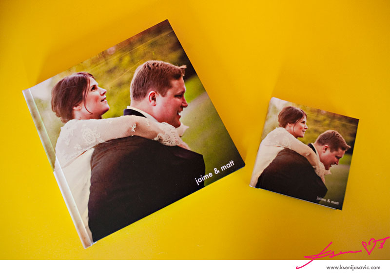 below are some photographs of the studio sample album in 10x10 size, as well as it's cute lil' 4x4 companion! these identical albums were created with images from the ah!mazing Jaime & Matt's wedding!