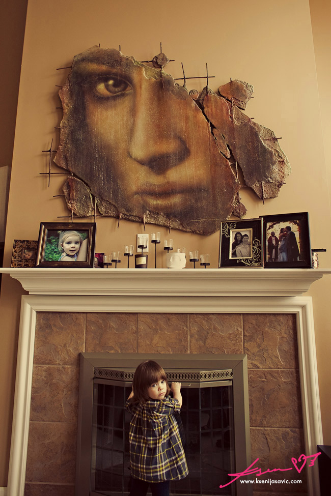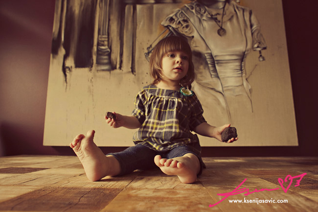 from her toes, to the different sized rocks she is holding, to her expression, to the awesome artwork behind her -- serious L O V E !