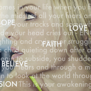 HOPE, fear, LIFE, struggle, LIGHT, tears, LOVE, heartache, BELIEF, doubt, PASSION, sadness, HAPPINESS